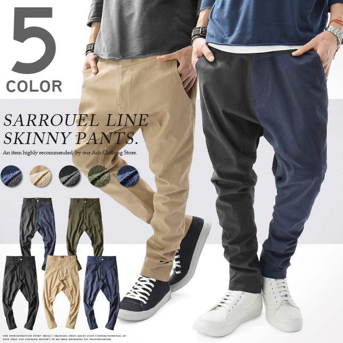【ストレッチ入り 変形ステッチ サルエルパンツ 全5色】