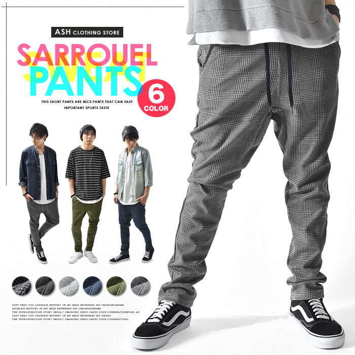 サルエルパンツ サルエル メンズ スウェットパンツ スウェット シルエット テーパードパンツ チェック 柄 カジュアル【sk-1】