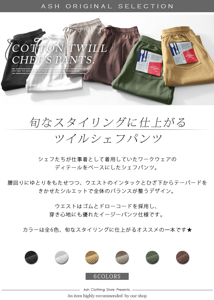シェフパンツ メンズ パンツ ボトムス イージーパンツ ワイドパンツ テーパード 綿100 コットン ツイル 無地 カジュアル