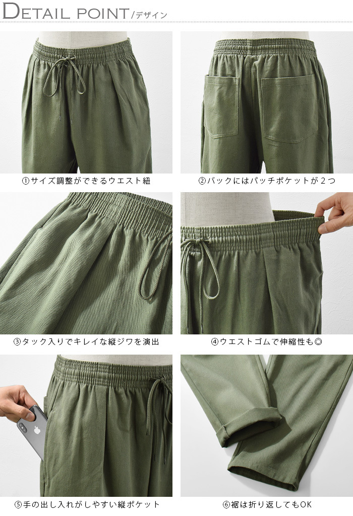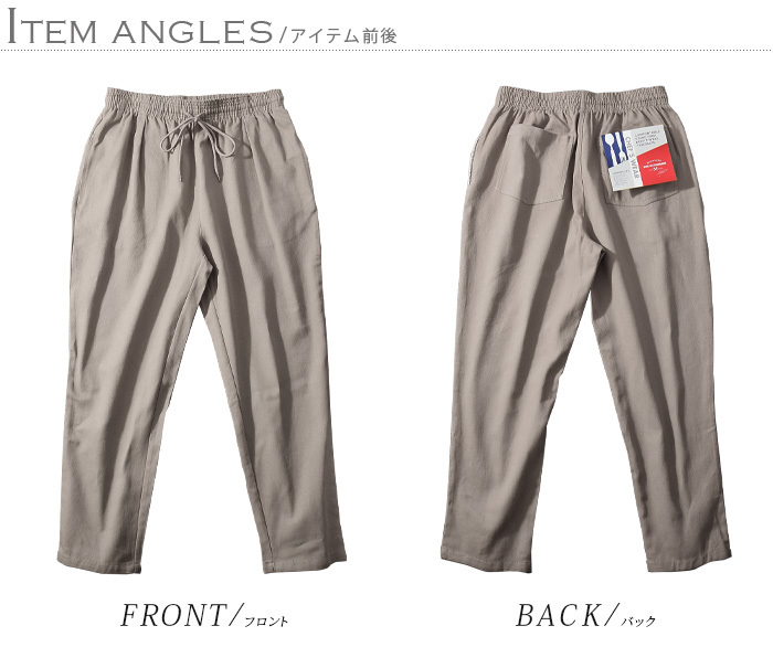 ウエストはゴムとドローコードを採用し、穿き心地にも優れたイージーパンツ仕様です。