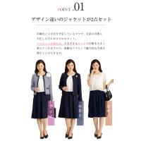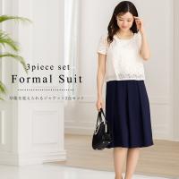 着回し自在な2点のジャケットとレース生地切替ワンピースの3点セットスーツです。