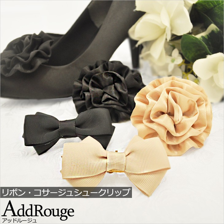 リボン・コサージュシュークリップ ベージュ ブラック リボン 結婚式 パーティー 二次会 お呼ばれメール便送料無料 宅配便あすつく[M便 1/2]