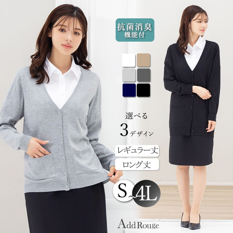 オフィスでの企業制服(ユニフォーム)として使える、ビジネスシーンに欠かせない事務服対応カーディガン。