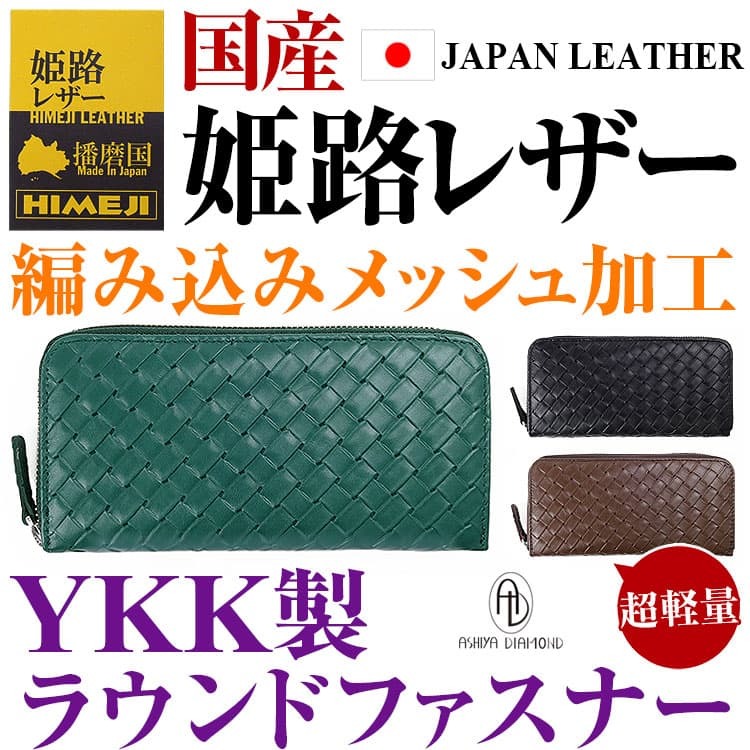 国産本革財布\33,000円が63%OFF/姫路レザー 財布 メンズ 財布 レディース 長財布 芦屋ダイヤモンド メッシュ編み込み型押し CP5