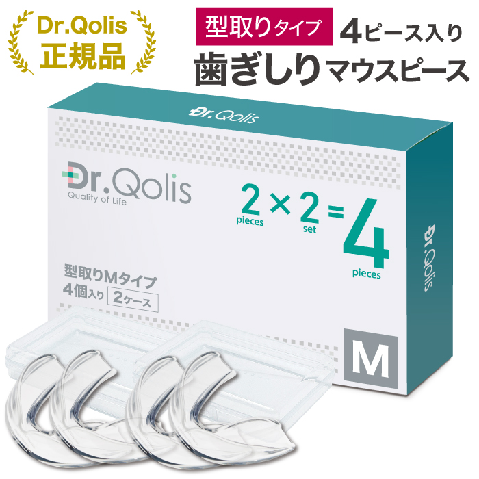 お得なまとめ買い マウスピース Dr.Qolis正規店 ナイトガード 簡単型取りマウスピース 1箱 (4ピース) 抗菌ケース2つ付 歯ぎしり 食いしばり 防止 ガード2-2