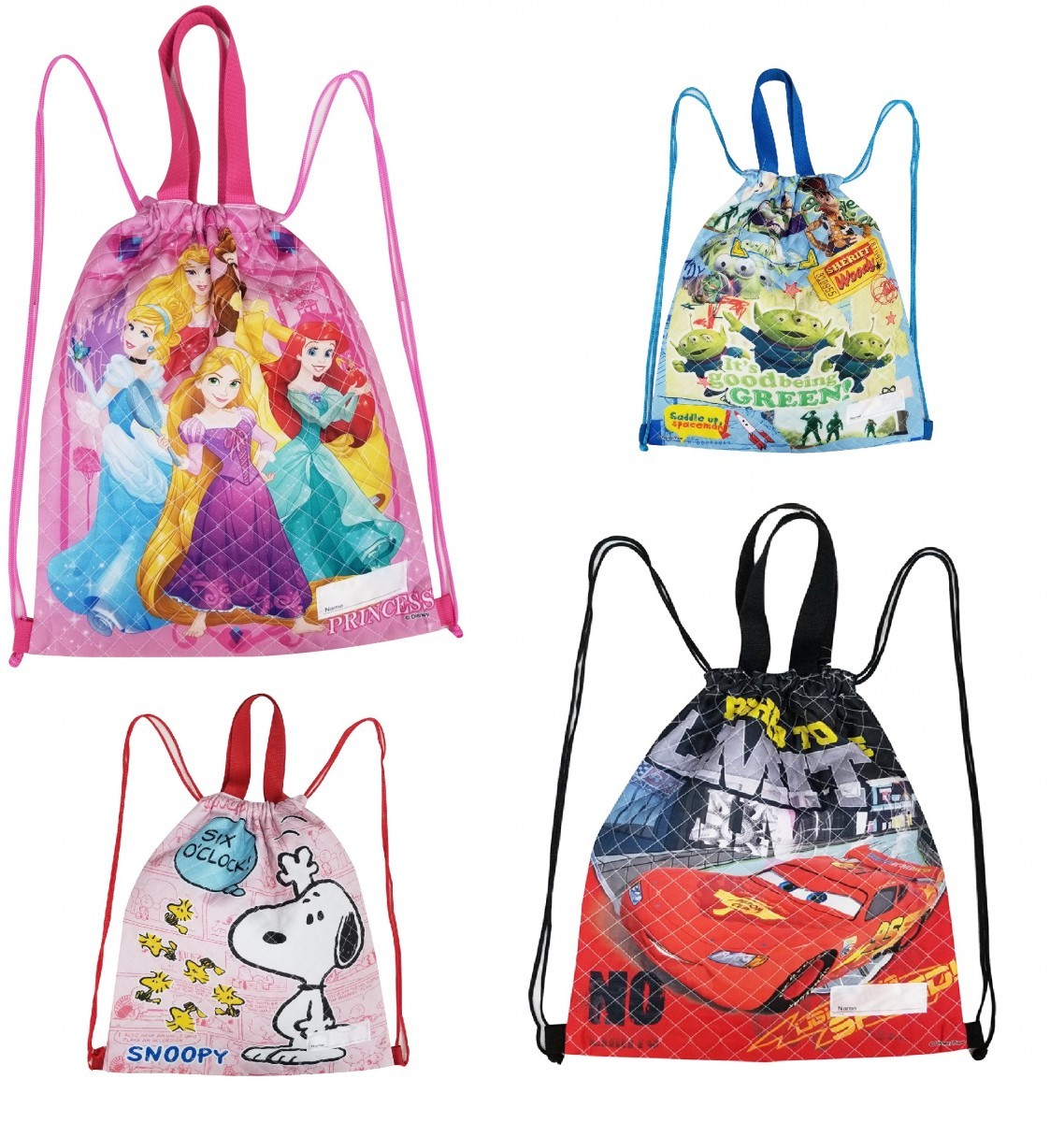 キャラクター キルト ナップサック 41×35cm プリンセス カーズ トイストーリー スヌーピー