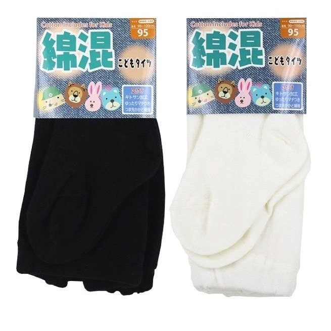 こどもタイツ 綿混 無地 ゆったり マチつき 子供 足付き キトサン加工 キッズ スクール タイツ 男の子 女の子 ブラック ホワイト カラータイツ 新光