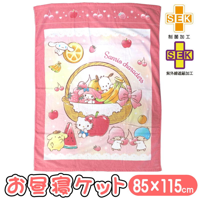 お昼寝ケット サンリオ キャラクターズ フルーツレース タオルケット 子供用 丸眞 85×115cm キャラクター グッズ 制菌加工 ブランケット
