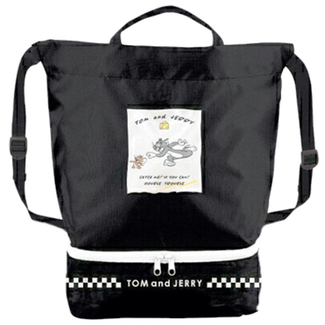 プールバッグ トムとジェリー 二層式 ナップサック 撥水 キャラクター ビーチバッグ クラックス 水着入れ 水着バッグ 120997 ブラック