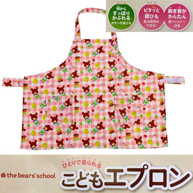 エプロン くまのがっこう ヤクセル キャラクター 子供用 100-110cm 保育園 餅つき 料理 こども エプロン 50459