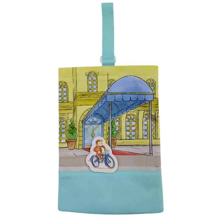 おさるのジョージ シューズバッグ ギミック 動くワッペン LOG4-2101 マルヨシ 上靴入れ 上靴袋 キャラクター シューズケース 入園入学