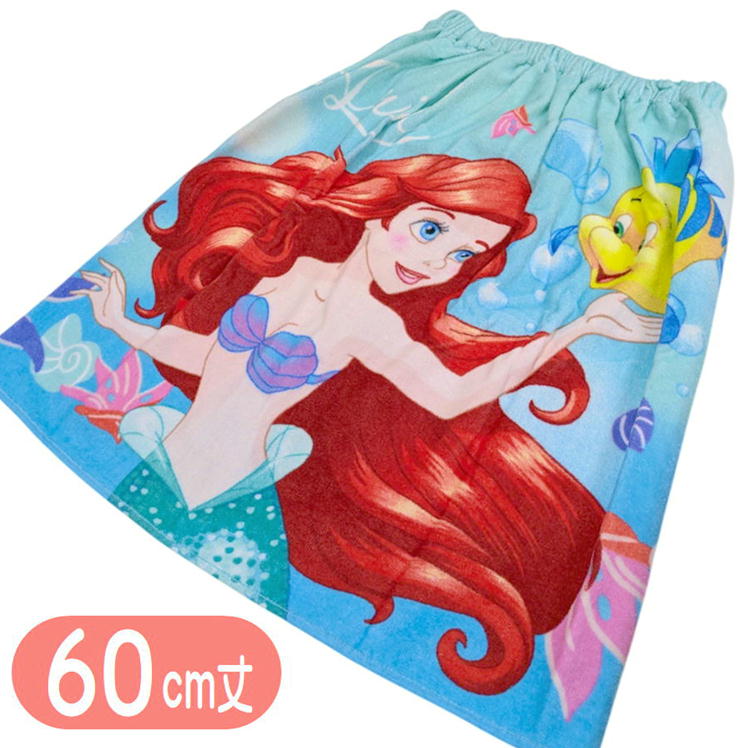 ラップタオル リトルマーメイド シャボンインザシー アリエル 丸眞 60cm丈 巻きタオル ディズニー プリンセス キャラクター プールタオル 海浜用品 水泳 ブルー