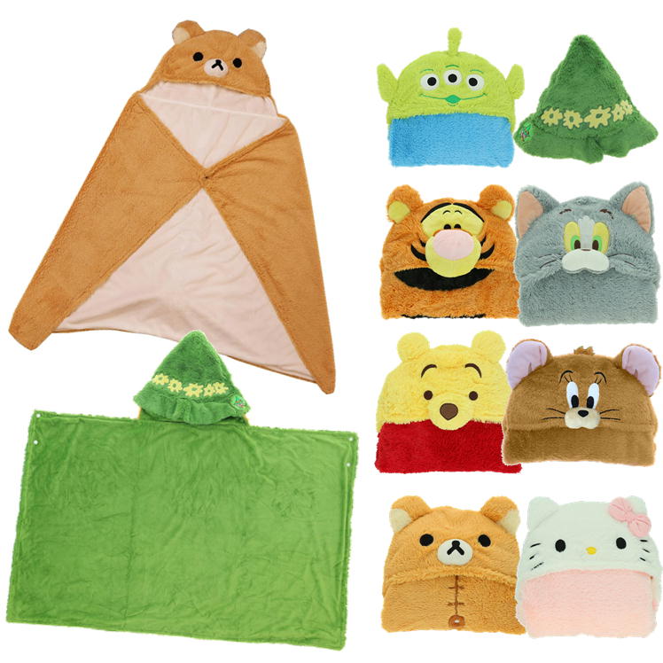 フード付きブランケット なりきり もこもこ 丸眞 キティ トム&ジェリー ディズニー リラックマ ムーミン ひざ掛け毛布 冬 防寒 グッズ