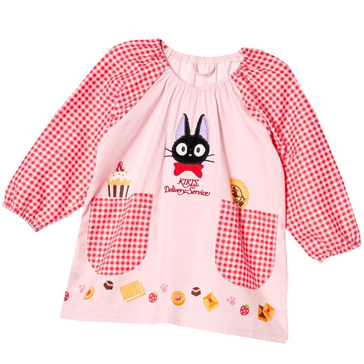 スモック 魔女の宅急便 ジジのおやつ アップリケ 丸眞 キッズ エプロン スタジオジブリ キャラクター 子供用 女の子 保育園 幼稚園 ピンク
