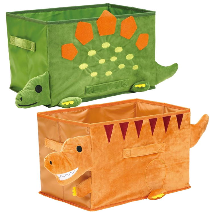 恐竜好きのお子様にぴったりなティラノサウルスとステゴサウルスデザインのダイカット収納ボックスです。