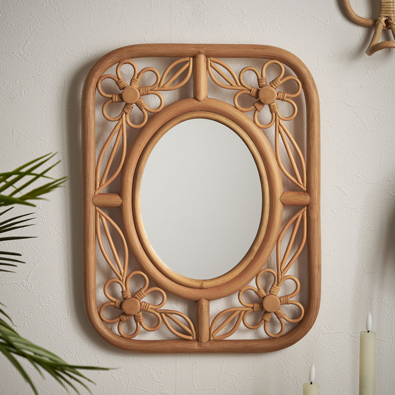 愛らしいフラワーモチーフのラタンミラー「デイジー」が登場。