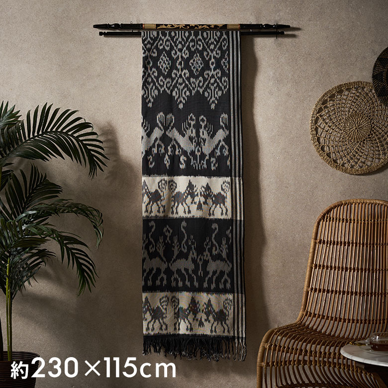 繊細な柄が美しく、インテリアに取り入れればたちまちアジアンリゾートの雰囲気に。イカットハンガーとセットで使うことで、プリミティブな空間の魅力がさらに広がります。