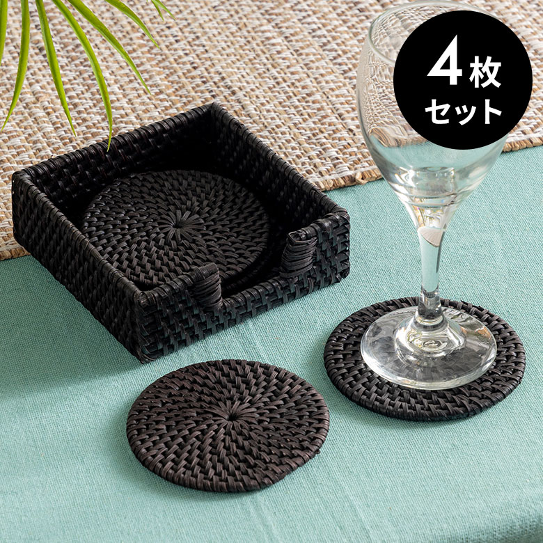 色濃く深みのある旬の色「エスプレッソカラー」で、ラタンを染め上げ、編まれたコースターのセット。