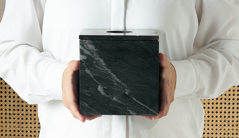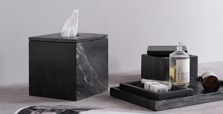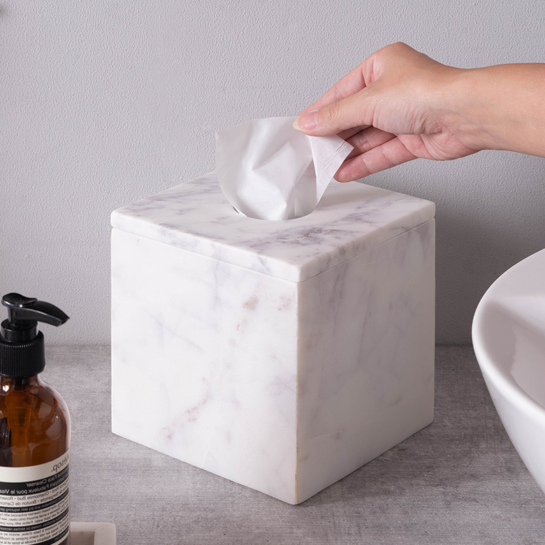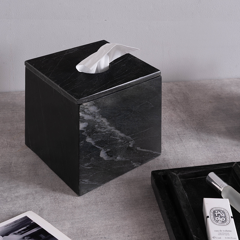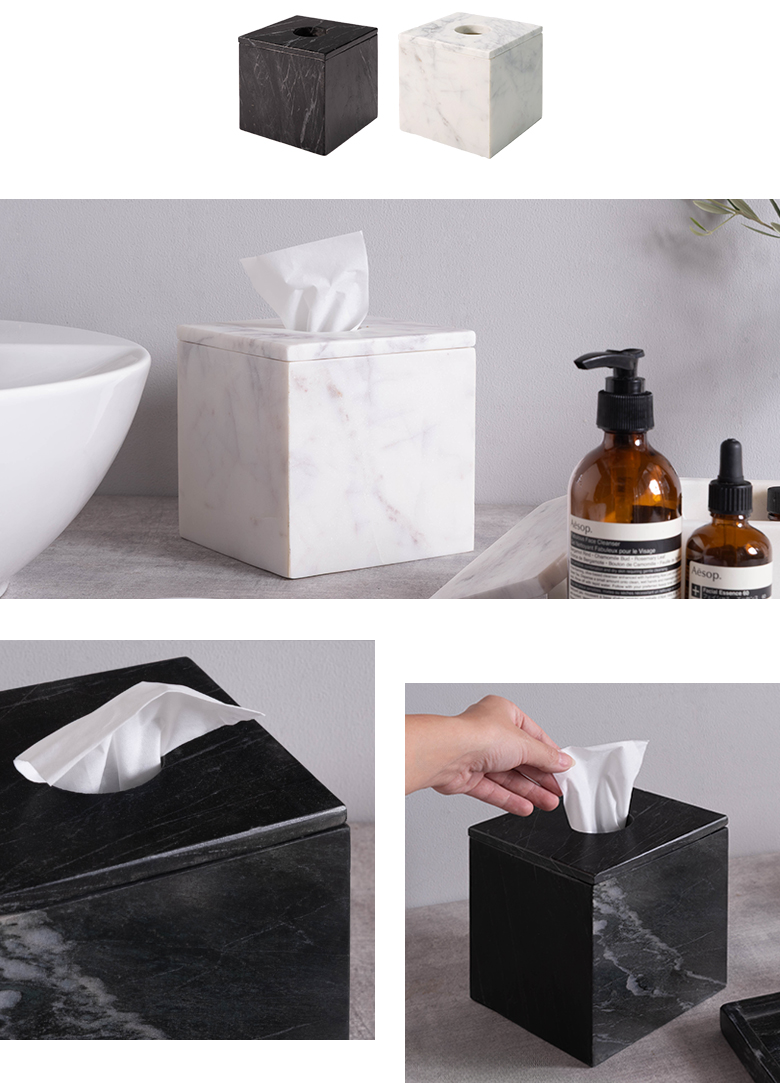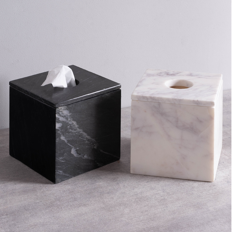 ・上質な天然大理石を贅沢に使用した、重厚感ある正方形ティッシュケース
