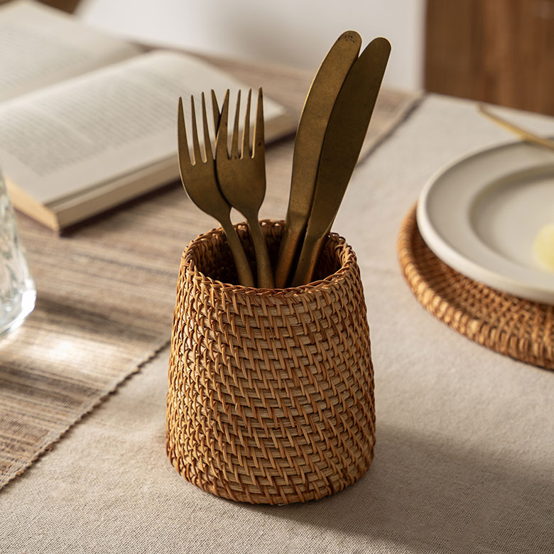 天然素材ならではの風合いを活かした、ラタンのカトラリースタンド。