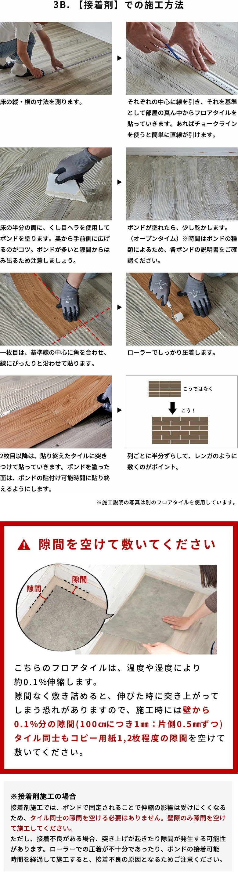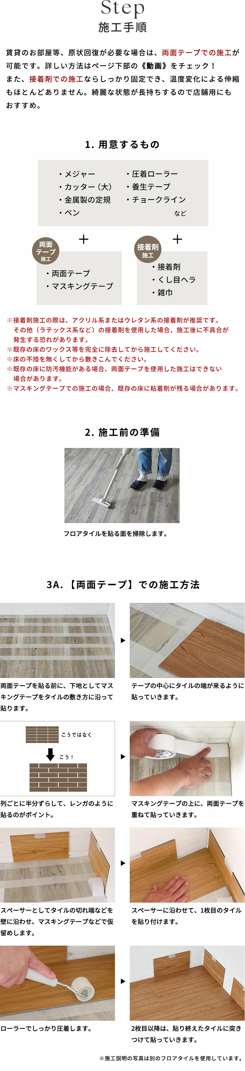 商品ページ内<置くだけフロアタイルのご注意>をご覧ください。