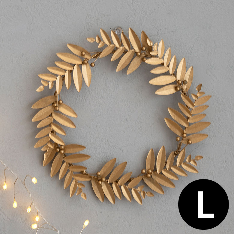 葉っぱのモチーフをいくつも重ねて作られた、ブリキ製のリース。