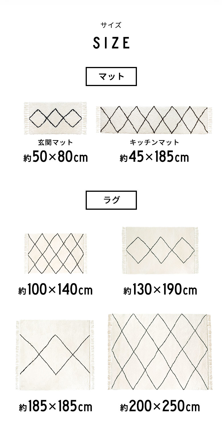 ★50×80cm >★45×185cm >【ラグマットサイズ】