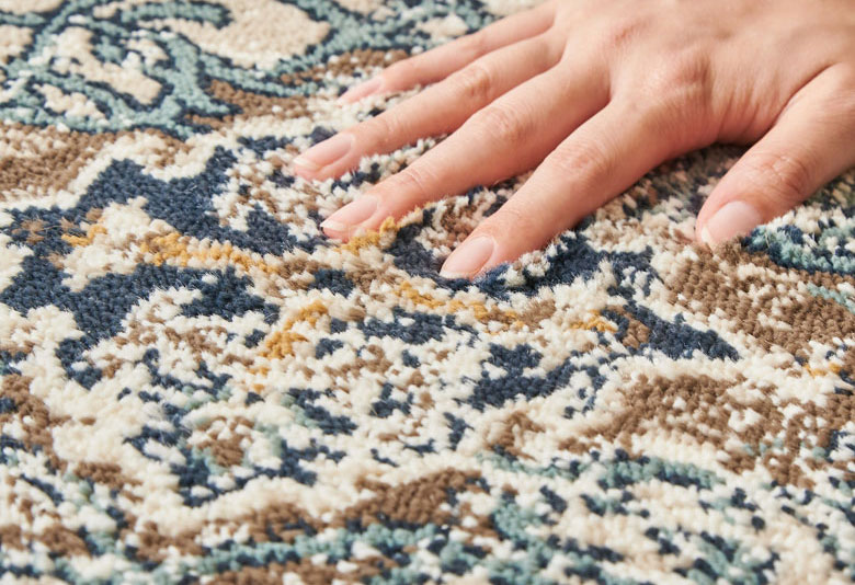 このラグは、パイル糸を複数の糸で交差するようにしっかりと織り込まれているため、プリントラグやシャギーラグ、マイクロファイバーラグに比べて、遊び毛や抜け毛がないのが特徴。また、毛足の密度が高くゴミやホコリが奥に入りにくいため、日々のお手入れは掃除機をかけるだけで清潔を保つことができます。
