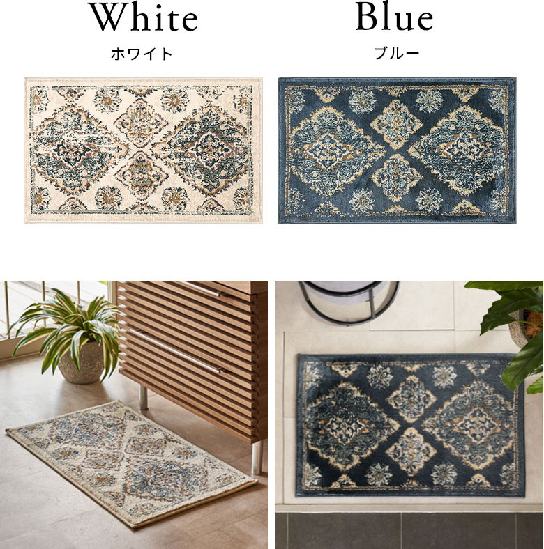・玄関はもちろん、洗面台や姿見の前などアクセントラグとして幅広く使える便利なサイズ(約50x80cm)