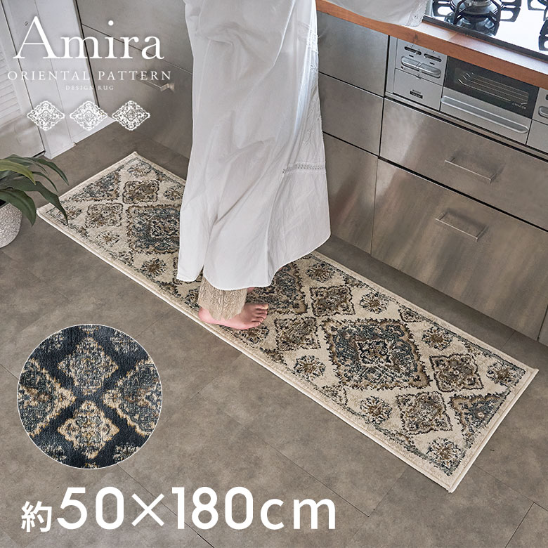 ・当店大人気のオリエンタル柄ラグ「Amira アミーラ」シリーズのキッチンマットサイズ