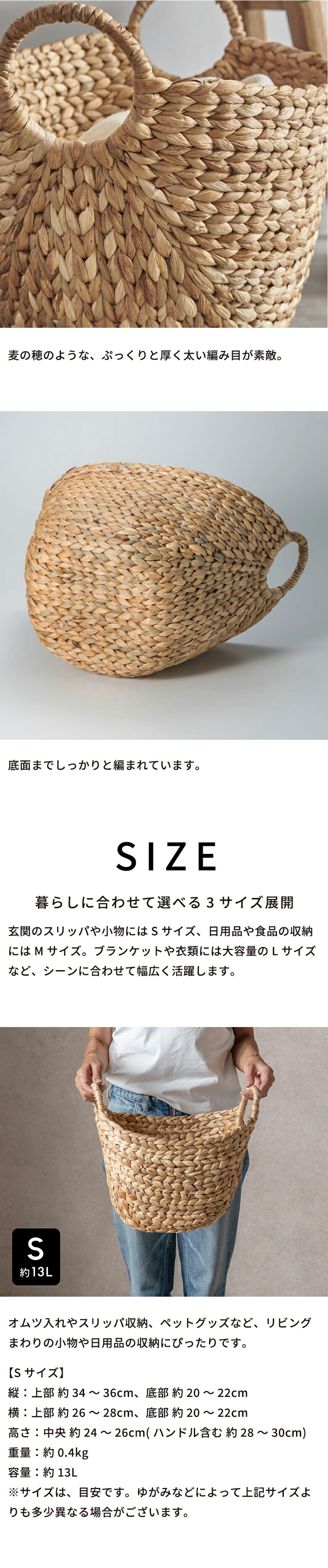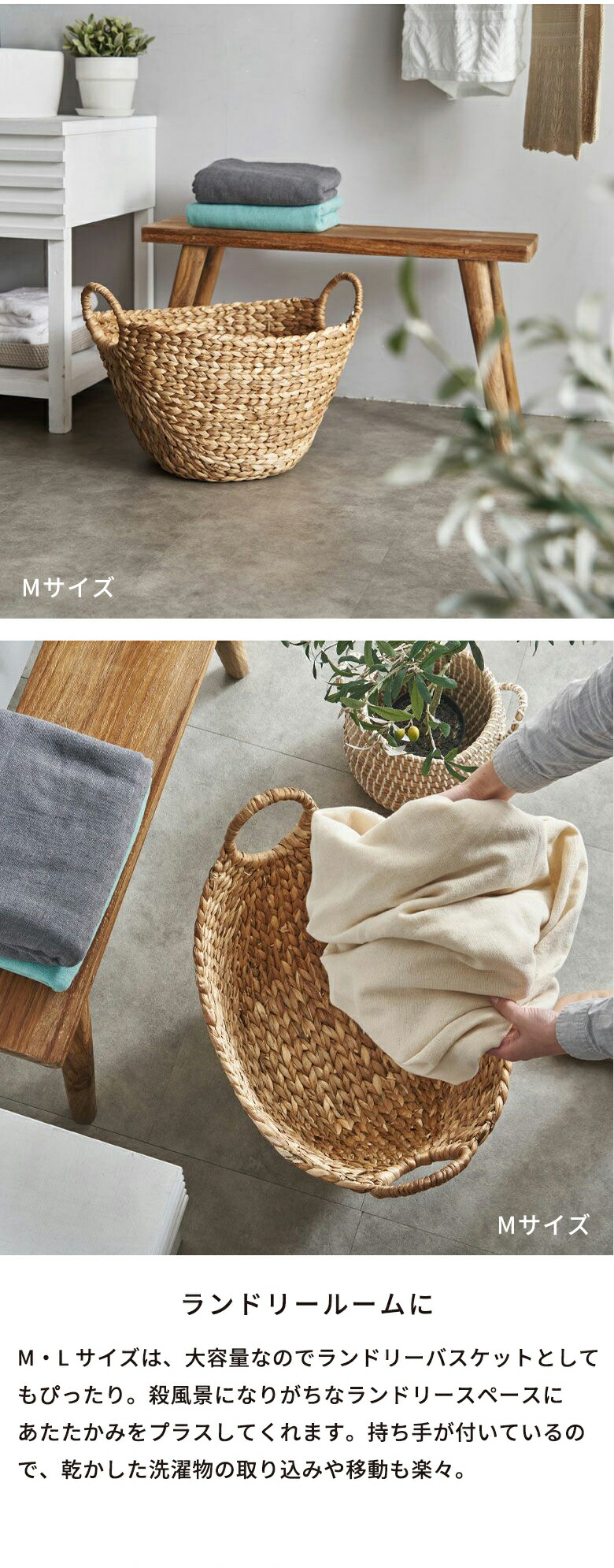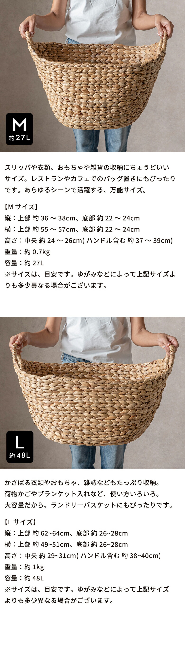 かごバスケット ウォーターヒヤシンスで編まれたふんわりバスケット ランドリーバスケット かご バスケット 北欧 荷物入れ 大きい おしゃれ かわいい vn50564