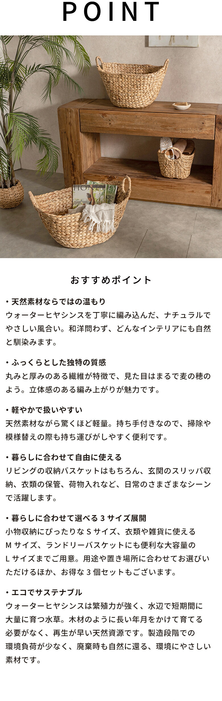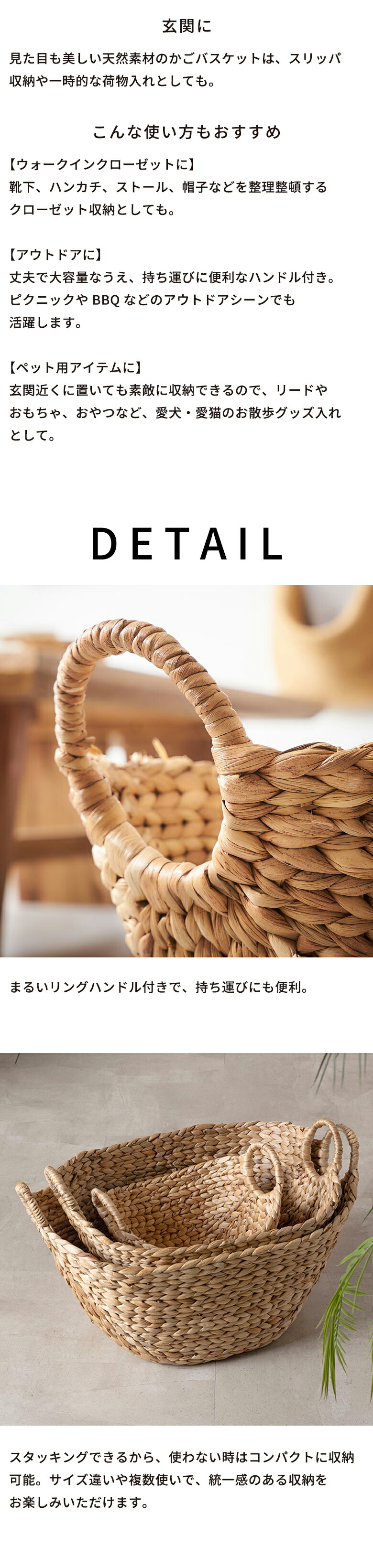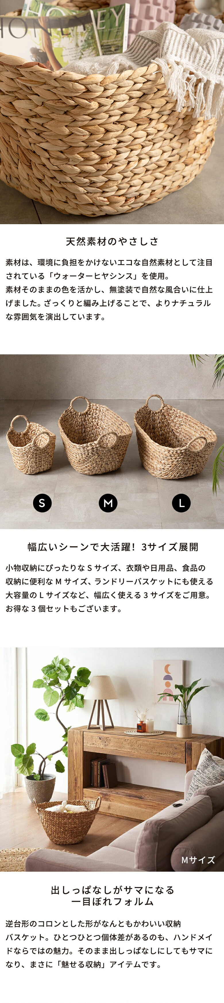 かごバスケット ウォーターヒヤシンスで編まれたふんわりバスケット ランドリーバスケット かご バスケット 北欧 荷物入れ 大きい おしゃれ かわいい vn50564