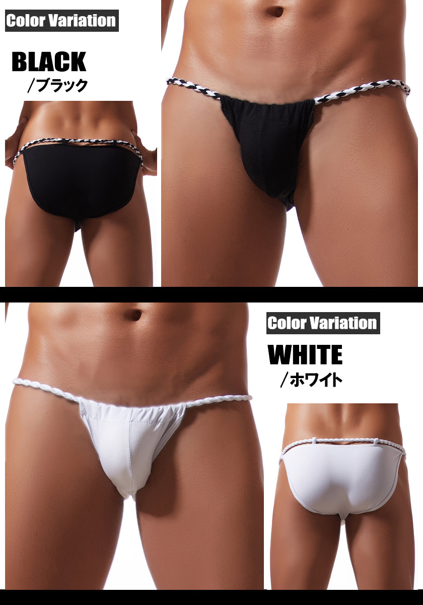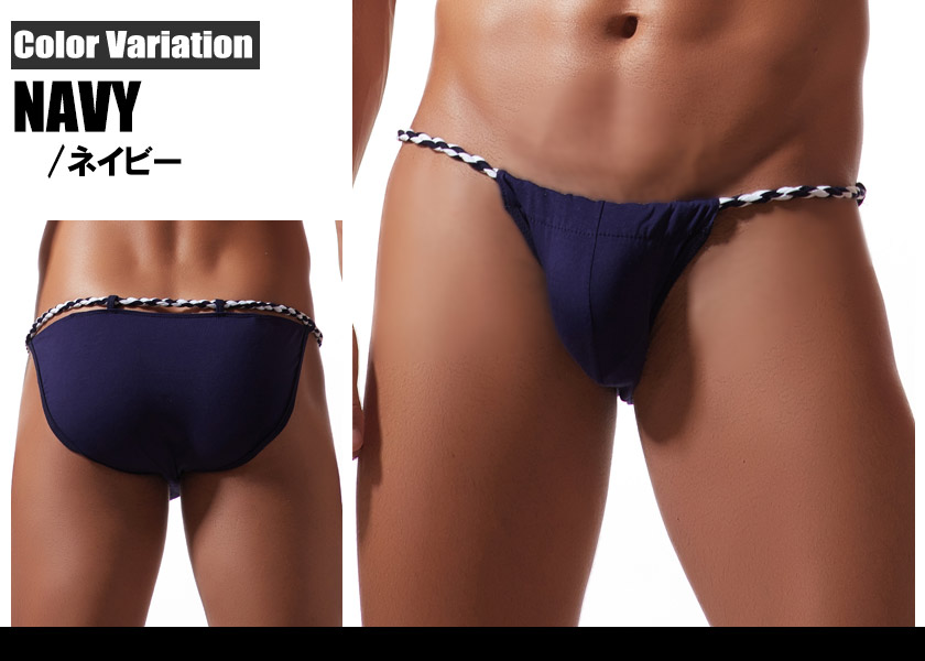 サイドにはねじりふんどし風の編み込みストラップを採用し、視線を惹きつけるデザインに。