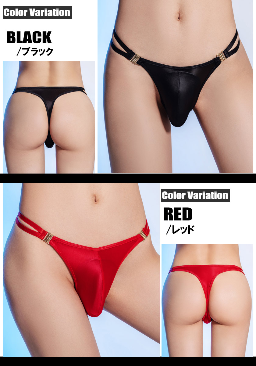 サイドストリングとフロントの留め金が特徴の洗練されたデザイン。