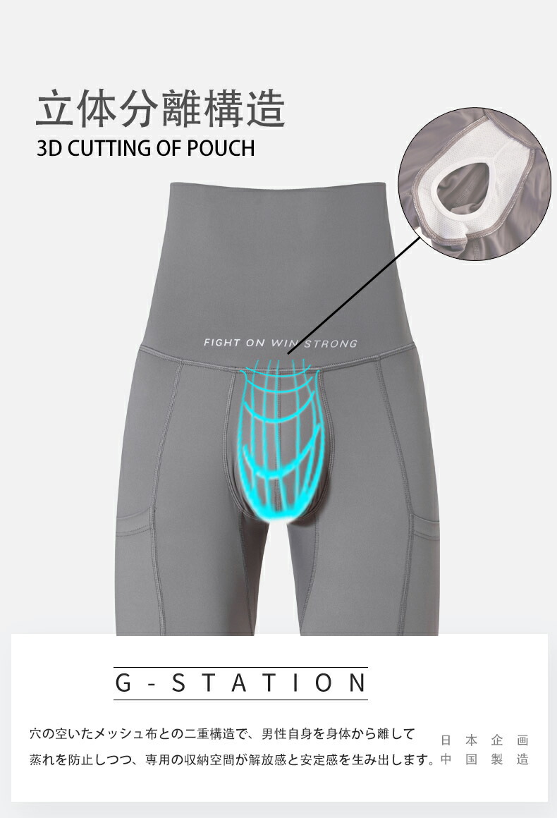 股部分はふくらみのある立体構造。穴の空いたメッシュ布との二重構造で、男性自身を身体から離して蒸れを防止しつつ、専用の収納空間が解放感と安定感を生み出します。セクシーな膨らみが、男性らしい肉体美を強調します。