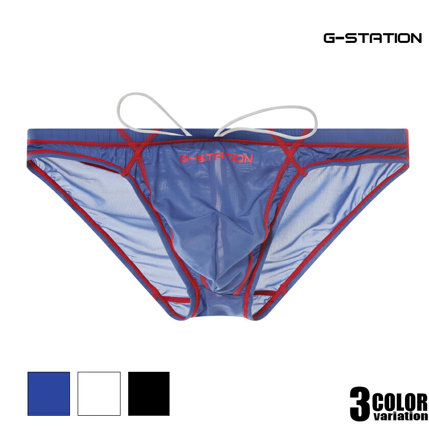 フロントはハーフシームで立体的に縫製されており、男性自身を圧迫せずに納められます。生地にゆとりがありますので、男性自身バックの中央は排水用にメッシュ生地に切り替えています。ウエスト内側には引き紐を内蔵しており、ある程度のサイズ調整が可能となっています。