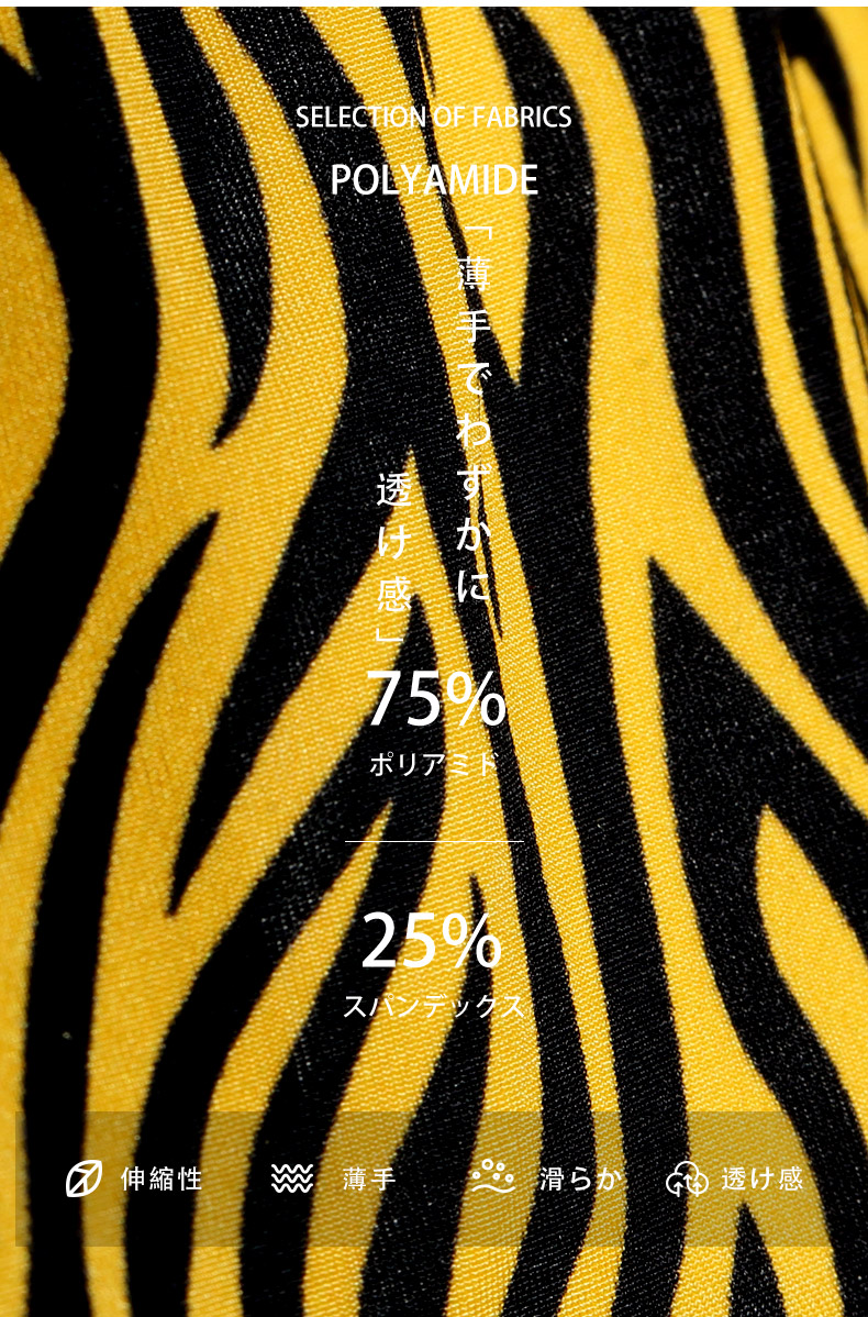 生地は薄くてしっとり、よく伸縮するポリアミド生地を使用。色落ちや型崩れしづらく、お手入れが簡単です。