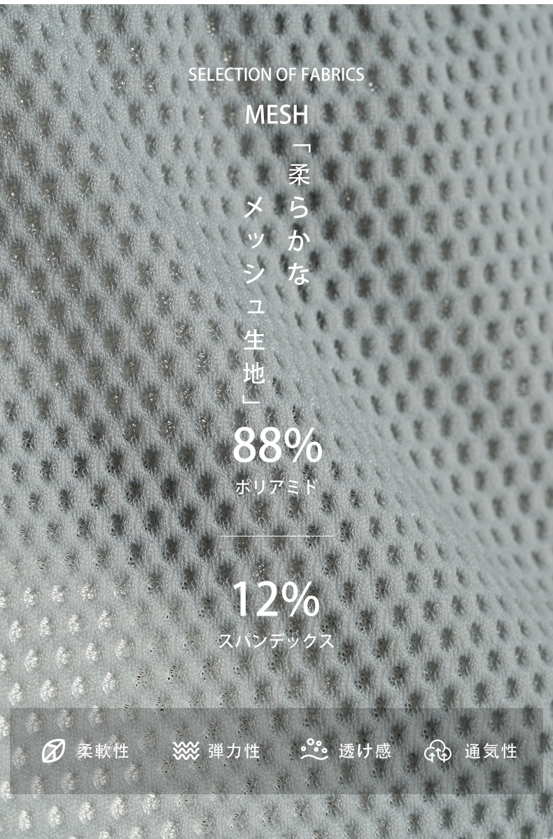 ASIANCLOSETの人気商品「息がしやすい!スポーツメッシュマスク(商品番号:mask-mask11) 」と同じ生地を使用しており、肌触りの良さ、バツグンの通気性には自信があります。カラーバリエーションも同じなので、上下を揃えた秘密のコーディネイトも楽しめます。
