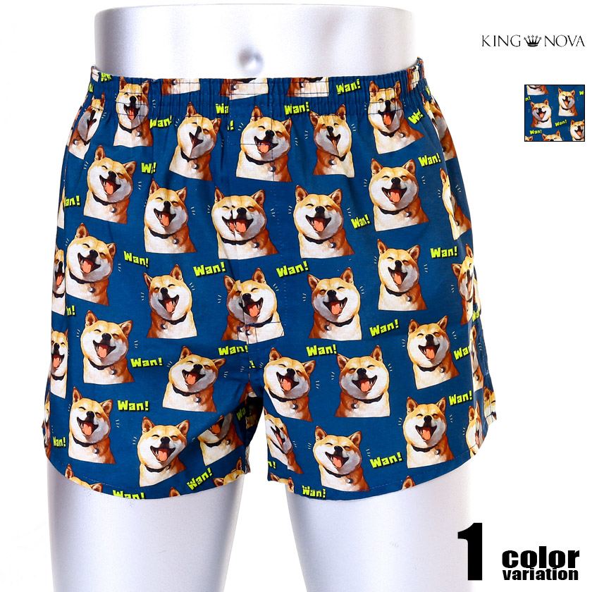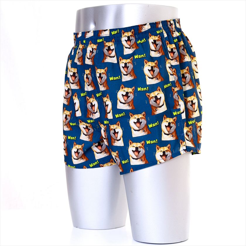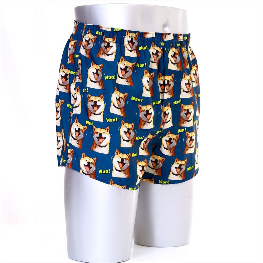 ■商品説明:ニコニコの柴犬が描かれた気分が明るくなるトランクスです。ボタン閉じ仕様の前開き付きで使い勝手が良く、ボタンは外から見えずにスッキリとした見た目です。サラサラの肌触りでべたつかずに快適な着用感です。速乾性のある生地を使用しているので、部屋干しの機会が多い方には特におすすめです。