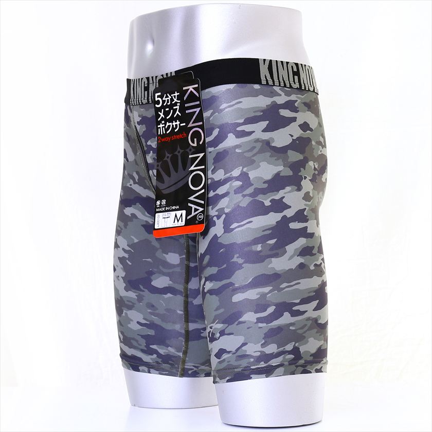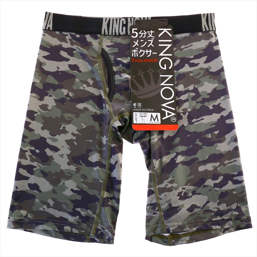 ■商品説明:根強い人気のスタンダードなカーキ色の迷彩柄ボクサーパンツです。太ももまでしっかりと覆う5分丈は、寒さ対策や安定したはき心地でアクティブシーンに向いています。身生地は薄手でストレッチ性に優れる生地を使用しております。やや光沢を帯びた生地で、プリントが鮮やかに映えます。便利な前開き付きです。