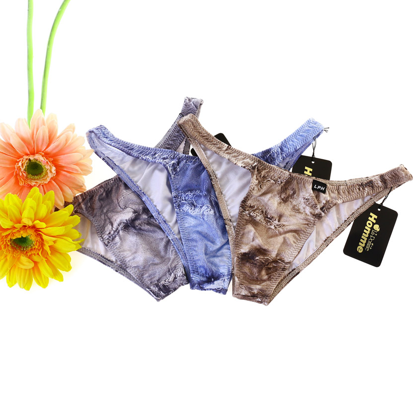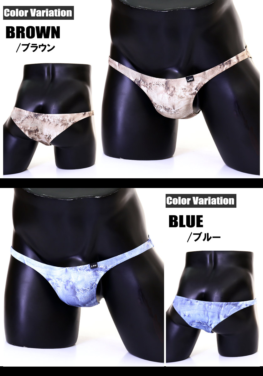 リアルなダメージジーンズ柄のプリントハーフバックビキニです。フロントに縫い目のないフラットな仕様です。僅かに光沢のある生地で、プリントの美しさが際立ちます。