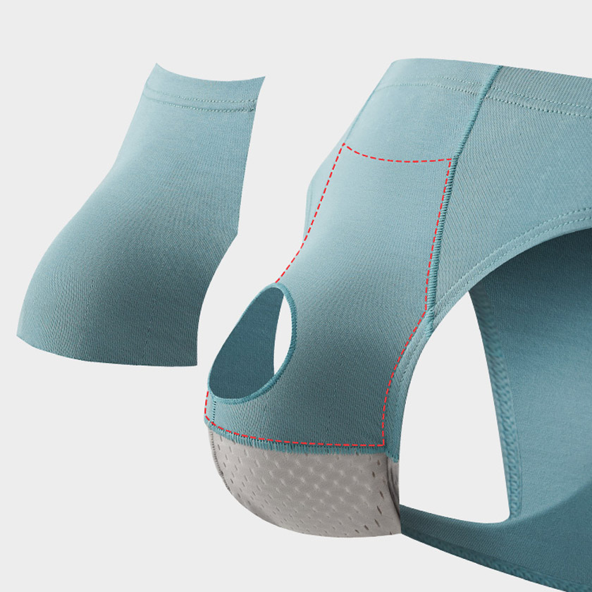 デリケートゾーンをしっかりと分けて包み込み、肌との接触を最小限に抑えることで、蒸れや不快感を軽減します。