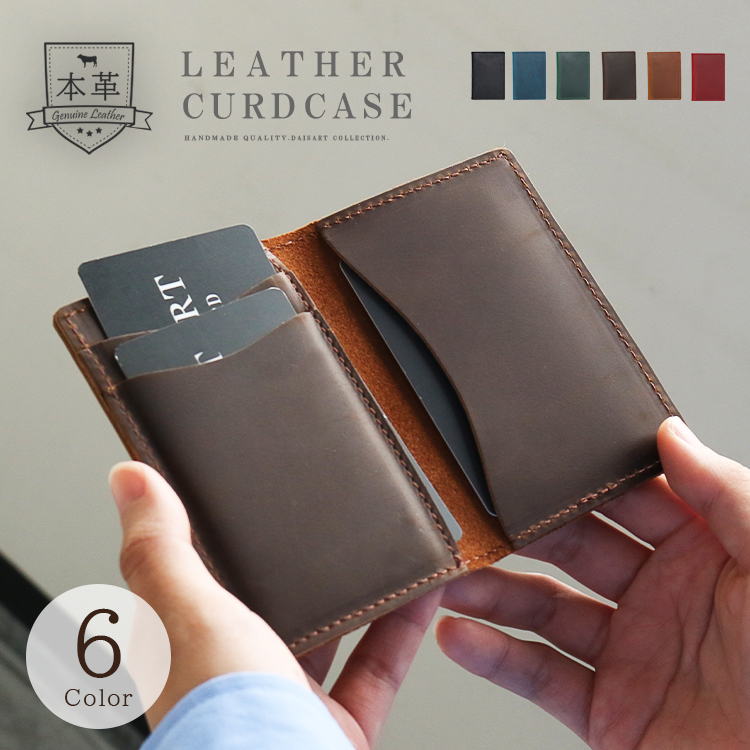 独特の風合いがあるオイルレザーを使用して製作したカードケースです。2つ折りタイプのシンプルでオーソドックスな作りで革そのものを楽しめる作りになっています。定期やIDカードなど、ICカードを収納するのに適しています。