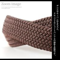 伸縮性のあるゴム入りアクリル紐が編み込まれたストレッチベルトです。ベルト穴がなくお好みの長さで留めることができ、長さ約110cmと約130cmで大きいサイズの方も安心して着用ができます。伸縮性があるため身体にフィットして着け心地抜群です。普段使いのデニムやチノパンはもちろんクロップドやショートパンツなど色々なボトムに合わせやすいベルトです。