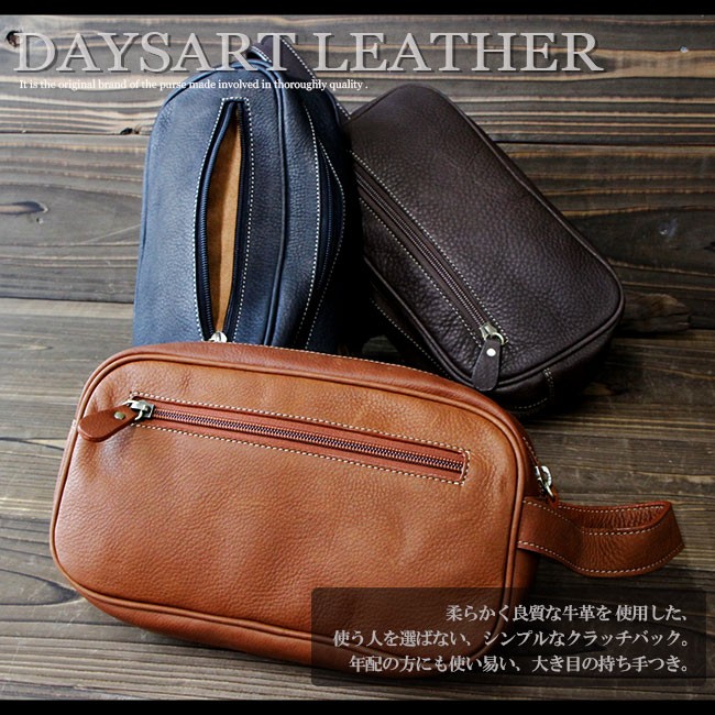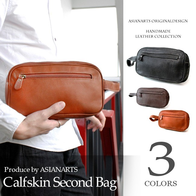 キメが細かくとても柔らかくて肌触りのいい上質のカーフスキン(子牛の革)を使用し、革職人がハンドメイドで製作しています。財布やスマホなど小物を収納するのに丁度いいサイズでビジネスでもプライベートでも使えるシンプルなデザインになっています。外部と内部のファスナーポケットは小分けに便利で、収納物を傷つけないよう裏地は不織布になっています。持ち手が付いているので持ち運びもしやすく、普段使いにおすすめなメンズバッグです。