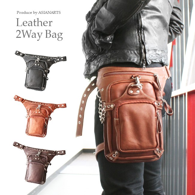 バッグ メンズ レッグポーチ 本革 レザー レッグバッグ ヒップバッグ ウエストバッグ レッグベルト ライダース