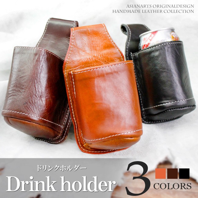 ドリンクホルダー レザー 牛革 ボトルホルダー ベルトループ バイク用 バイカー ペットボトルホルダー
