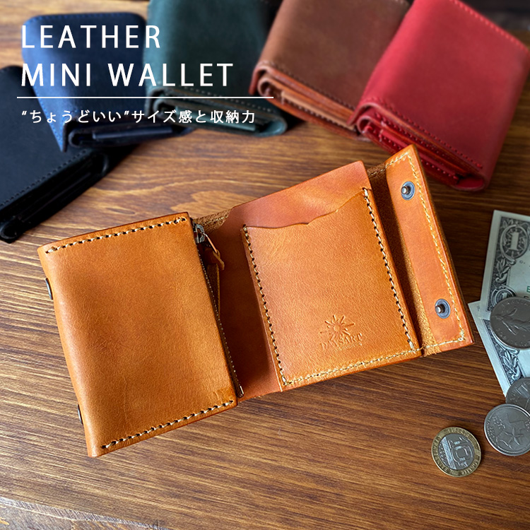 財布 メンズ 二つ折り 本革 レザー ミニ財布 コンパクト 小さめ ブランド おすすめ 人気 おしゃれ キャッシュレス ボタン ファスナー 小銭入れ ブック型