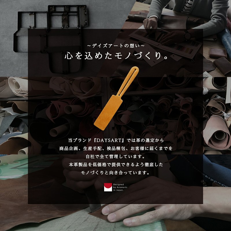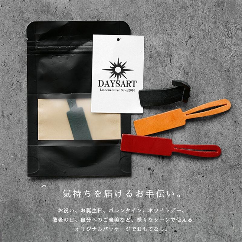 イタリアの老舗タンナー「LaPerlaAzzurra社」高級ミッスーリレザーを贅沢に使用した、本革製のアンブレラマーカー。傘の目印はもちろん、バッグや鍵、イヤホンコードなどの識別や整理にも使える多機能レザータグです。全8色から選べるカラーバリエーションで、用途や好みに応じた色分けが可能。吸い付くようになめらかな手触りと、使うほどに増すツヤと深みが魅力。軽量かつスマートなデザインで、日常使いやギフトにも最適です。すべて国内の職人が丁寧に仕上げた、上質なハンドメイドアイテムです。