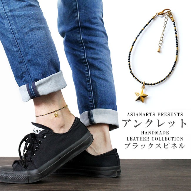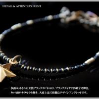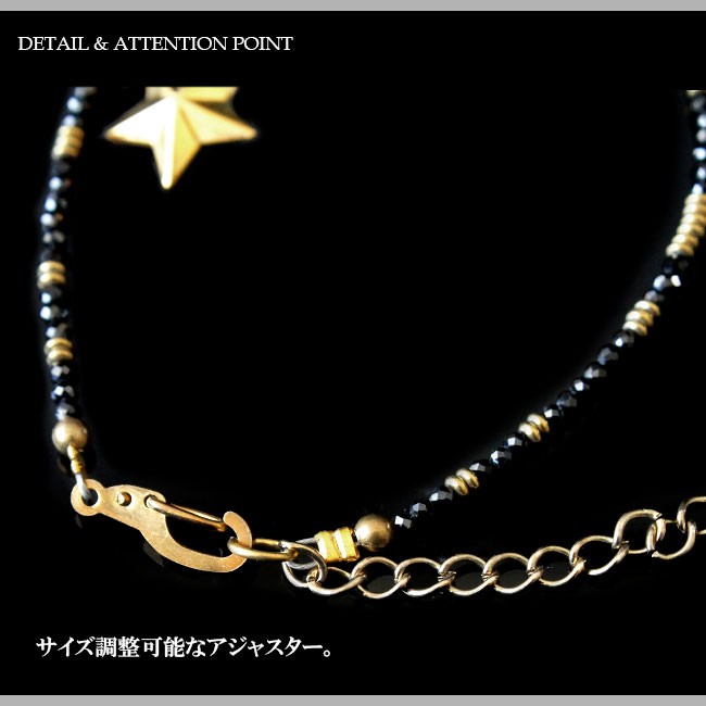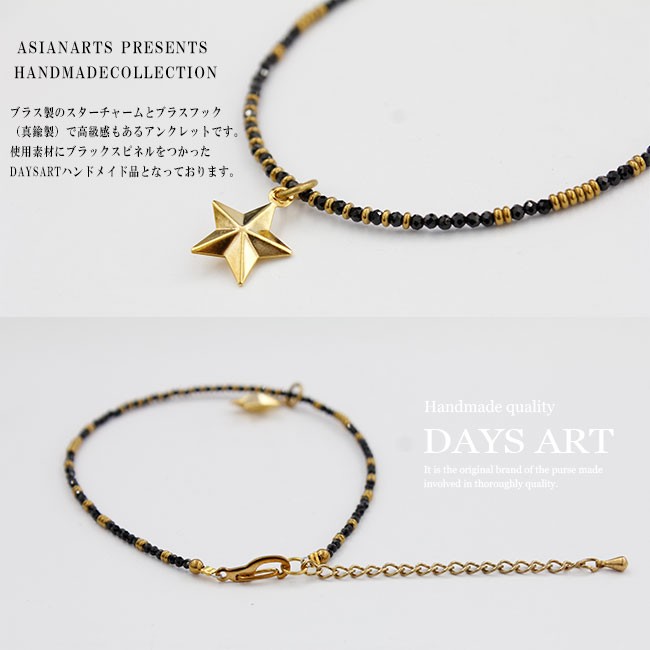 アンクレット メンズ レディース ブラックスピネル スターチャーム ブラス ゴールド 極細 天然石 ストーン